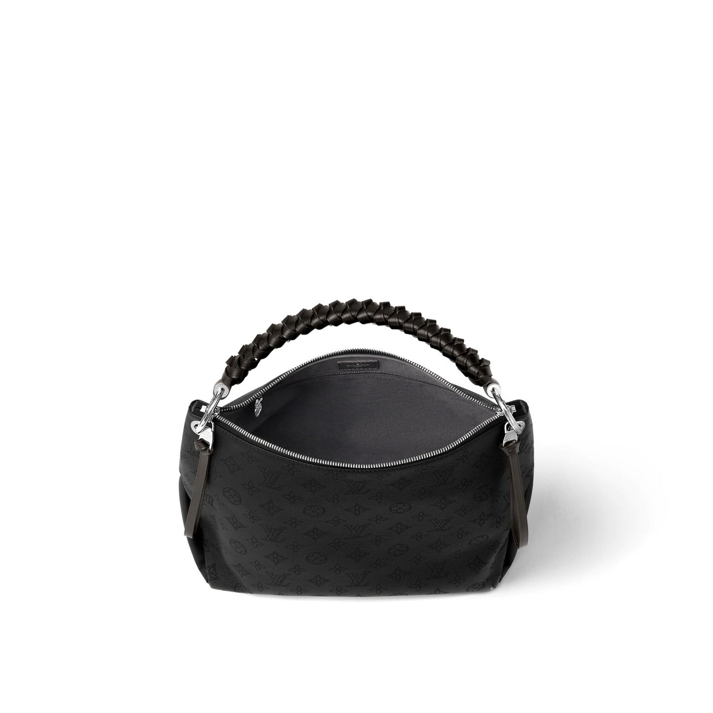 The Beaubourg Hobo MM bag is made from Mahina calf leather perforated with the Monogram pattern. It boasts a stylishly braided-leather top handle, with hand-painted edge-dyeing along the braids. The leather zip pulls and large LthtV charm sign the bag. A detachable, wide leather strap means that this supple bag feels comfortable against the body.