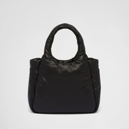 This tote bag made of soft nappa leather is decorated with the iconic enameled metal triangle logo that illuminates the front. The inverted construction emphasizes the soft, curved image of the silhouette completed by a double handle and magnetic closure. The interior is lined in nappa leather and has three compartments.
