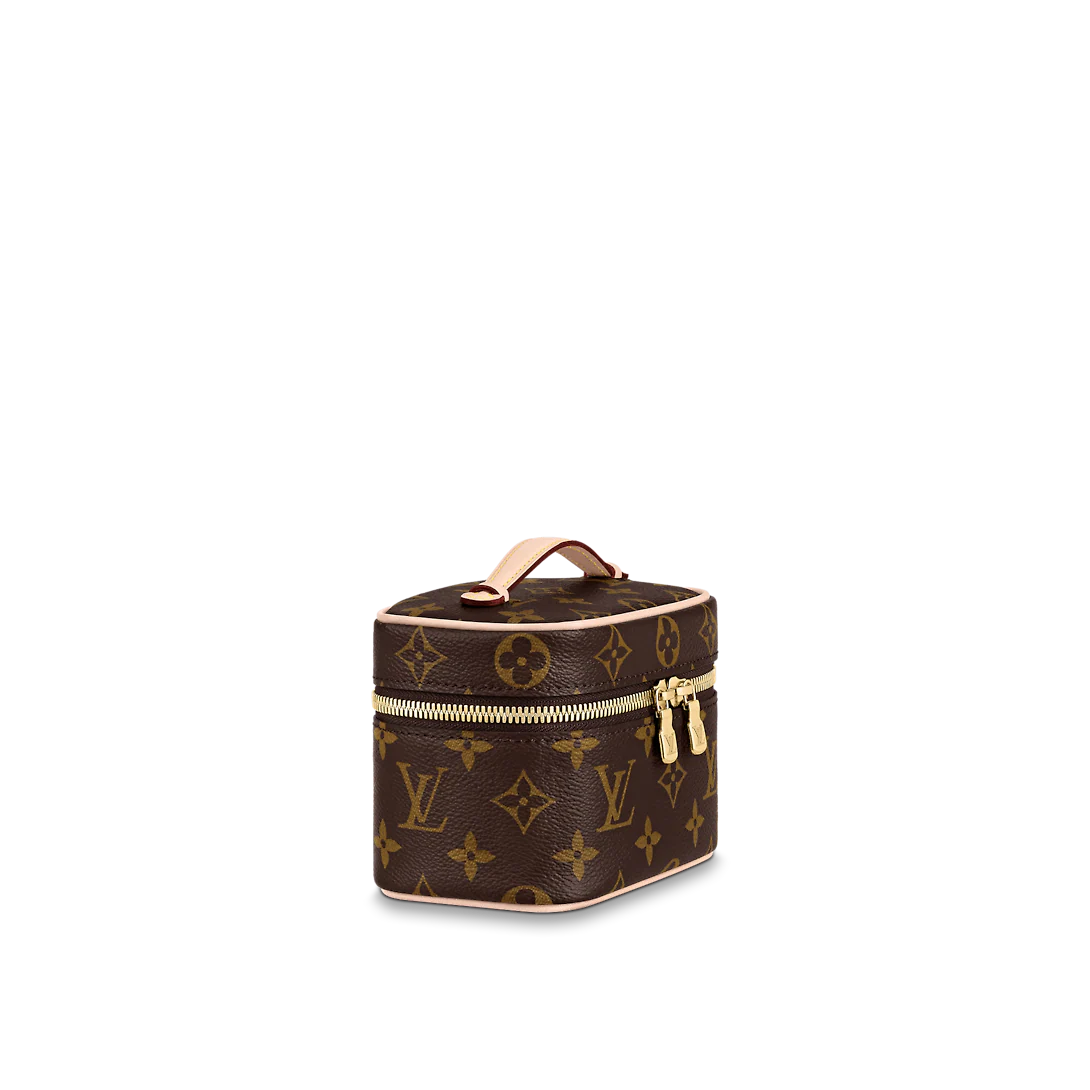 Small and surprisingly roomy, the Nice Nano vanity case can be used to store beauty essentials like nail polish or lipstick in a bathroom, or as a bag inside a bag to keep small items organized. Fashioned from Monogram canvas with a top handle that flattens for easy packing, it easily fits into even tight spaces.
