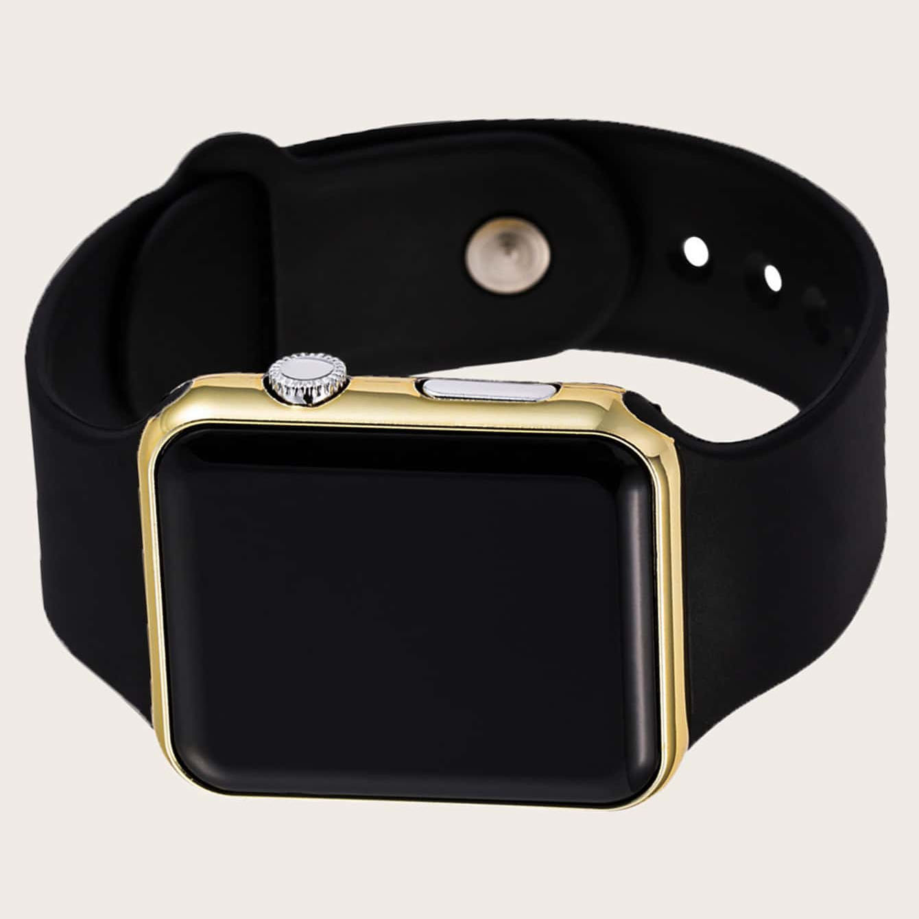 1pc Black Plastic Strap Fashionable Square Dial Electronic Watch & 2pcs Bracelet, For Daily Life
