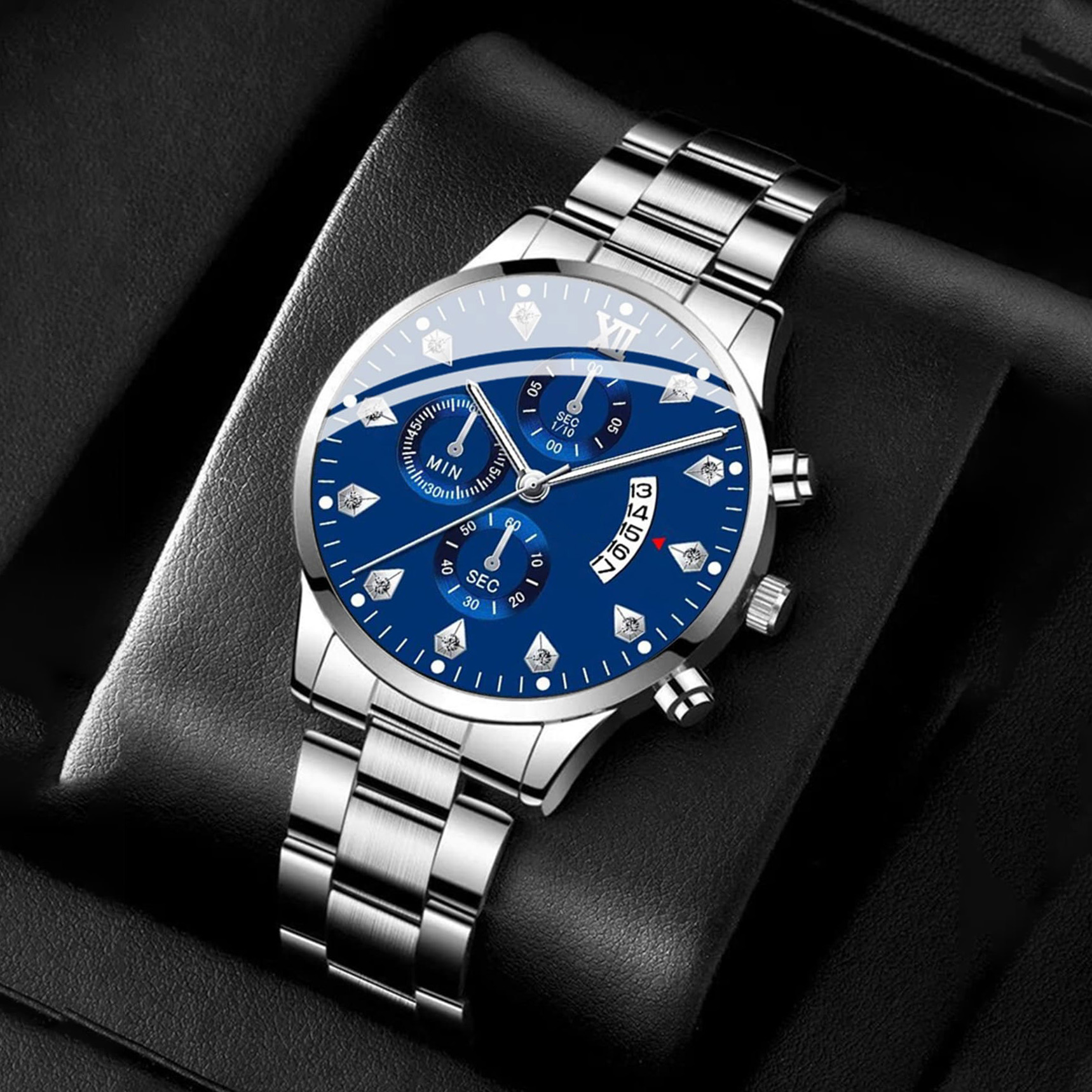 Men Round Pointer Date Quartz Watch