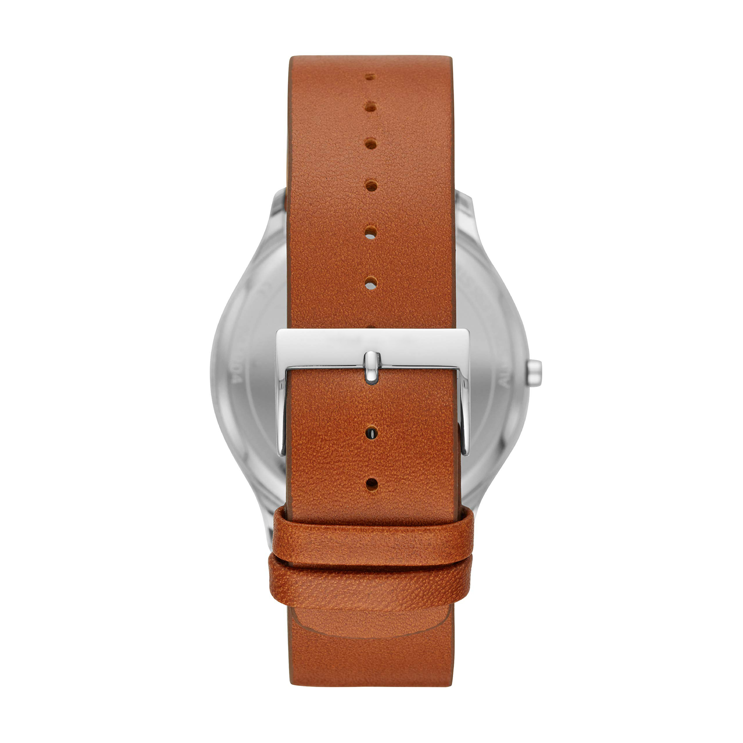 Brown leather band. 22MM with a Single Prong Strap Buckle closure