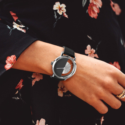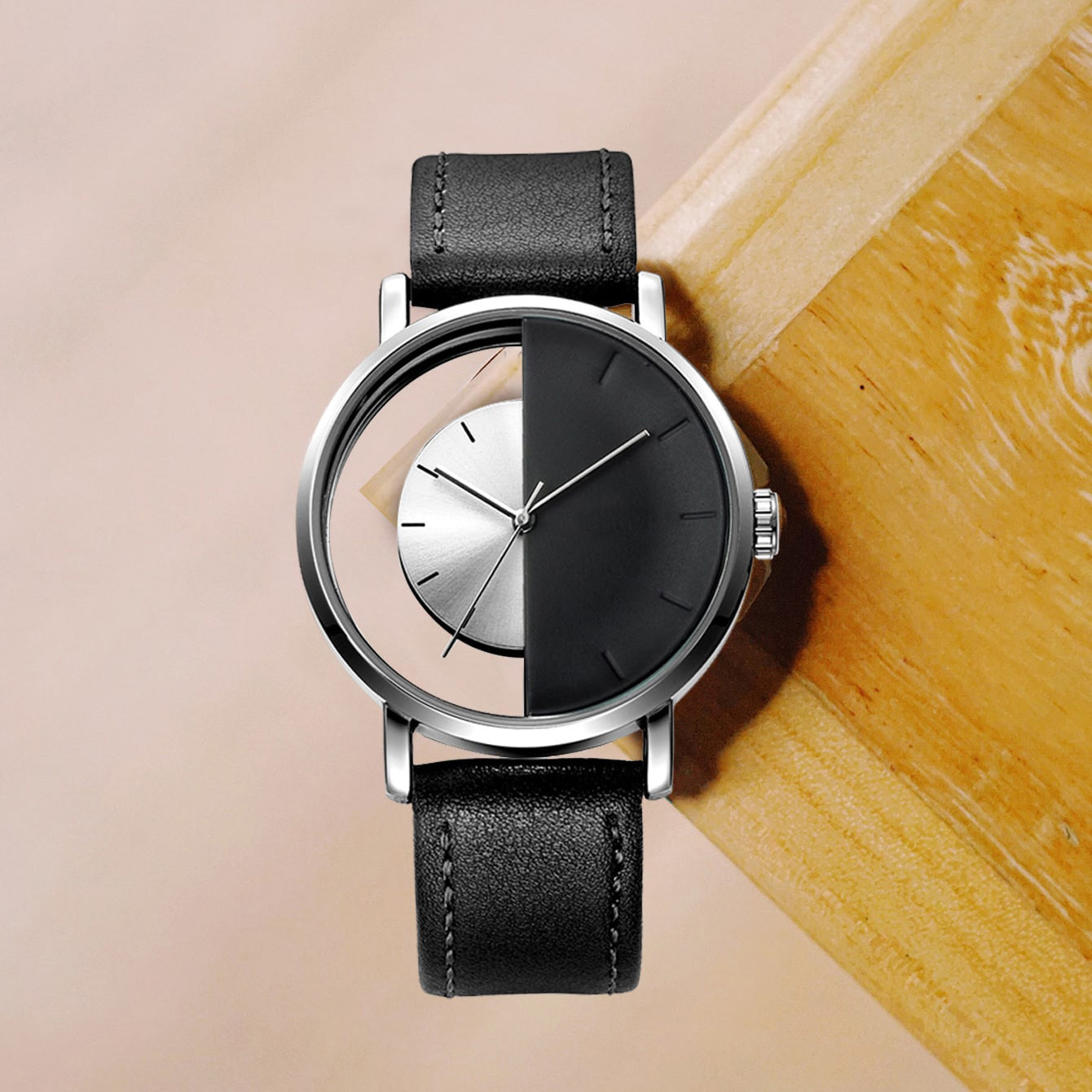 Simple & Fashionable Men's Transparent Bottom Half Dial Leather Belt Watch
