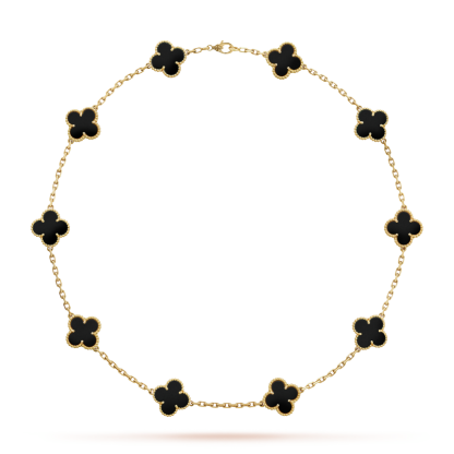 Vintage Alhambra necklace, 10 motifs, 18K yellow gold, onyx.
