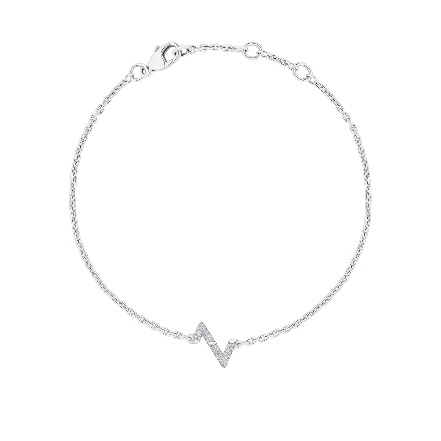 The LthtV Volt chain bracelet in 18-karat white gold is set with a diamond-encrusted motif composed of the Maison’s iconic initials. The L is up, the V is down, for a pulsating design as modern as it is precious. The adjustable chain enhances the versatility of this jewel, which can be worn on its own or layered with other pieces.