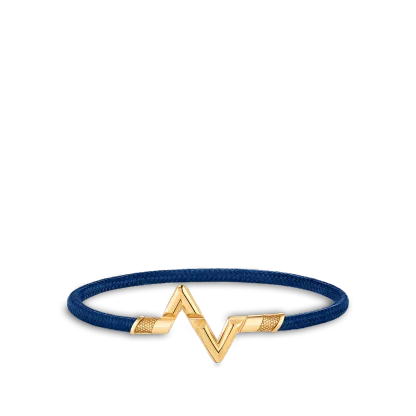 The LthtV Volt Play bracelet features the iconic L and V initials fused in a design that pulses with energy. Cast from 18-karat yellow gold, the jewel fastens securely onto a colorful, interchangeable cord which is offered in four lively hues. This unisex bracelet can be styled solo, in multiples, mixed or matched with other pieces from the collection.