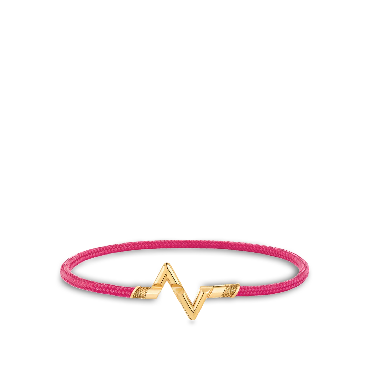 A dynamic take on the Maison's iconic initials, the LthtV Volt Play bracelet is a unisex piece that pulses with vital energy. The 18-karat yellow gold motif fits securely on a colorful, interchangeable cord, which is available in three vibrant hues. Styled alone or mixed and matched, the bracelet makes a striking statement.